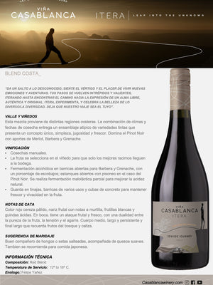 Paladar:En boca, tiene un ataque frutal y fresco, con una dualidad entre la pureza de la fruta, la tensión y el agarre. Cuerpo medio, largo y persistente y final largo que recuerda frutos del bosque y caliza.